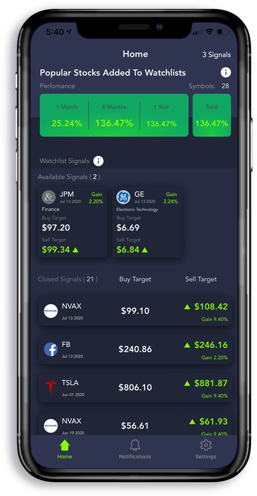 Not only do we send out the signals, we guide you on when to take profits, trim positions or close them.