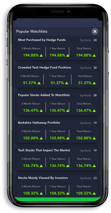 Chose from 25+ hand-picked watchlists. More getting added monthly!